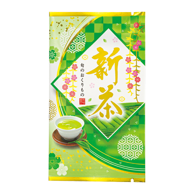 和柄をあしらった華やかなデザインの新茶袋です。同じデザインで50g・100g・200g袋もございますので、シリーズでの商品展開が可能です。