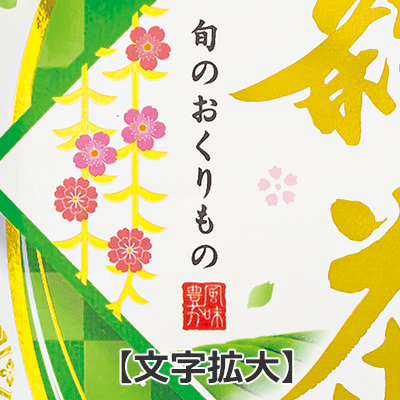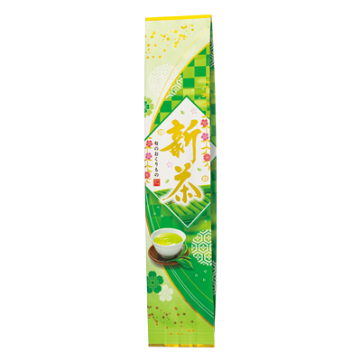 和柄をあしらった華やかなデザインの新茶袋です。同じデザインで50g・100g・200g袋もございますので、シリーズでの商品展開が可能です。