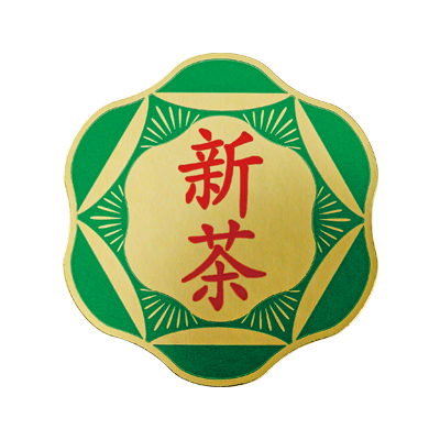 花形で艶のある原紙を使用した新茶シールです。普段お使いの茶袋に貼って、新茶をアピールしてみませんか!?