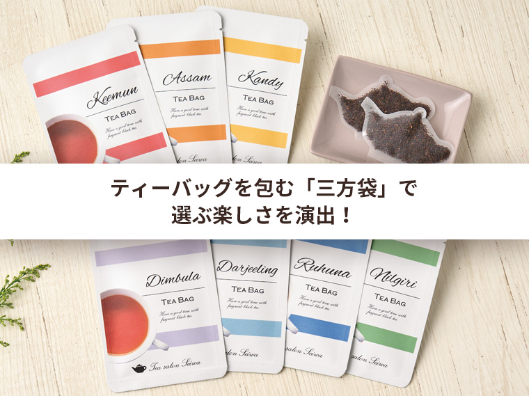 ここでは 「オリジナル ティーバッグのつくり方」、「オリジナル ティーバッグ パッケージのつくり方」の2つを紹介しています。